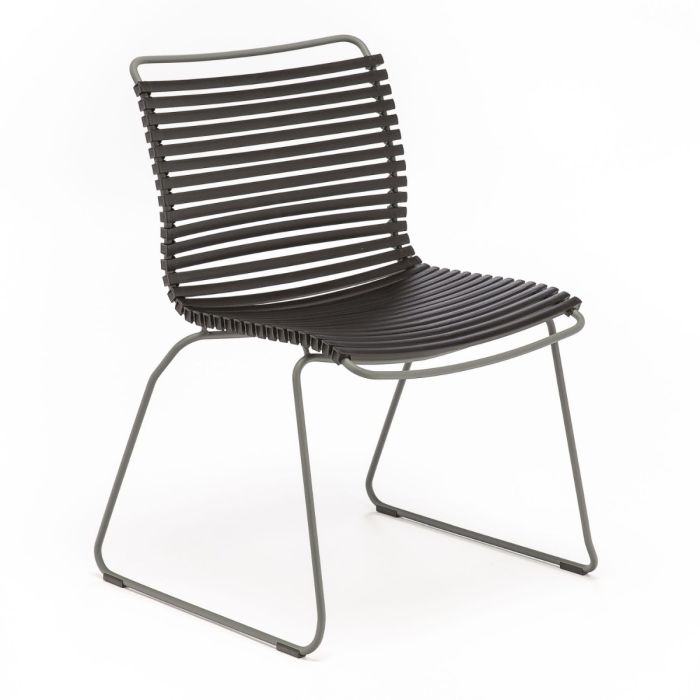 Ilma käetugedeta Click tooliversioon. Click välitoolide sarja muudavad eriliseks plastikust ribid, mis kinnituvad raami külge individuaalselt ning muudavad istumise väga mugavaks. Click toolid on saadaval väga mitmes variatsioonis – käetugedega ja ilma, samuti kuuluvad sarja nutikad reguleeritava seljatoega toolid, lamamistoolid, kahes suuruses kiiktool ja lounge-tool.
