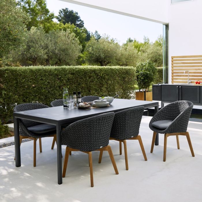Drop söögilaud ühendab endas nurgelise lauaplaadi pehme disainiga alumiiniumraamiga. Drop sarja kuuluvad lisaks erinevas suuruses söögilaudadele ka väliköögi lahendused. Drop sarjas on kasutatud eritellimusel loodud alumiiniumprofiili, mis tagab tugeva konstruktsiooni ja elegantse viimistluse.
