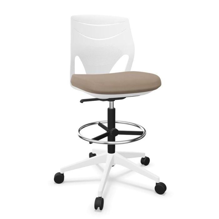 Efit Office Chair, Low Back, White Backrest / Beige Upholstered Seat / White Base