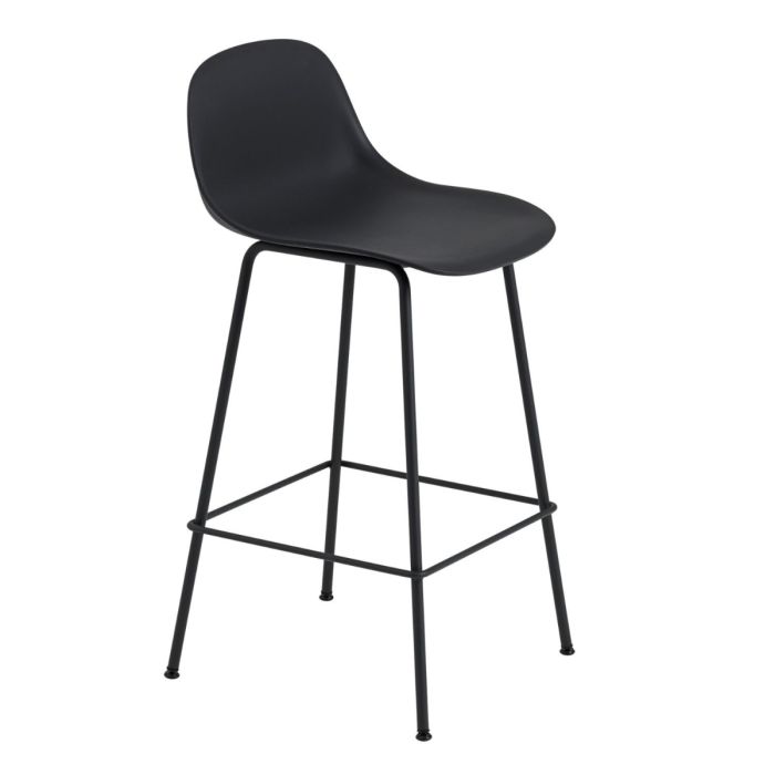 Fiber Bar Stool, H65 cm, Tube Base, Black Seat / Black Base