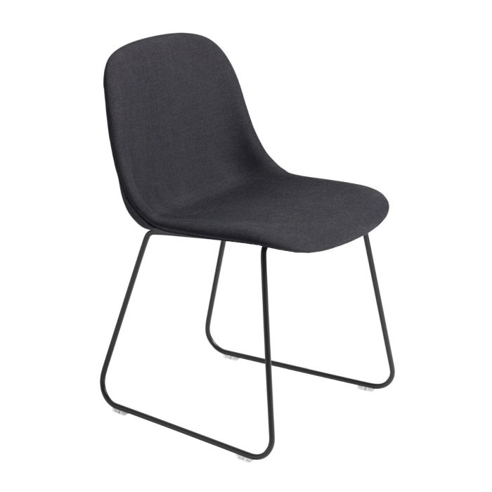 Fiber Side Chair, Sled Base, Dark Grey Upholstery / Black Base