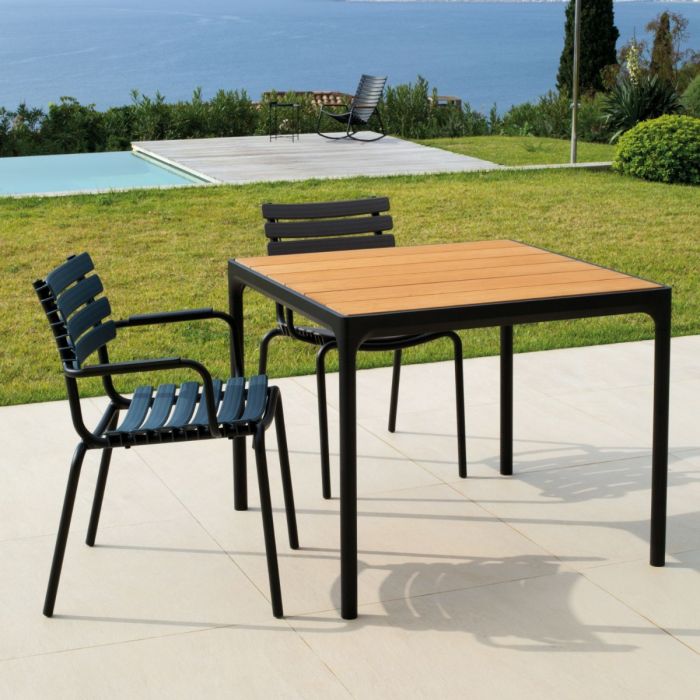 Lihtsa ja selge disainiga õue mõeldud välilaud on saadaval neljas suuruseversioonis. Laua raam on valmistatud mustas või tumehallis värvitoonis alumiiniumist, plaat on valikus musta värvi metallist ribidega ja bambusest ribidega.