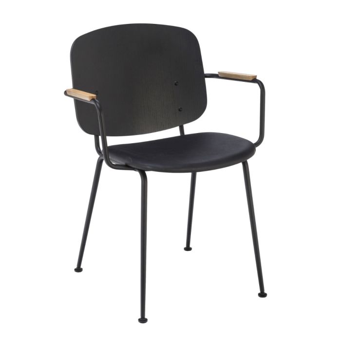 Grapp Dining Chair With Armrests, Black Back / Black Leather Seat / Black Metal Frame