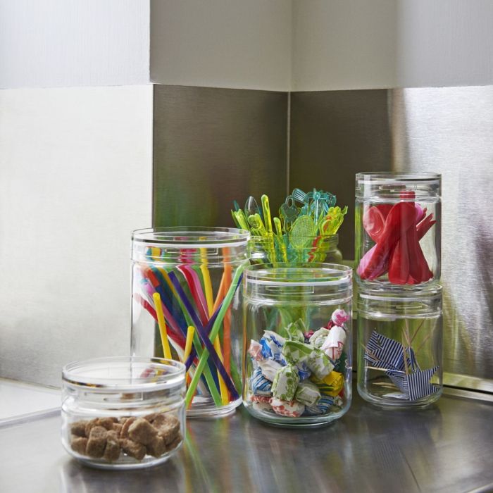 Klaaspurkide sari on valikus neljas suuruses, purgid on varustatud kaanega.