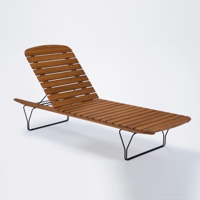 Bambusest ribidega viieastmelise seljatoega päevitustool, millele saab juurde soetada istmepadja.