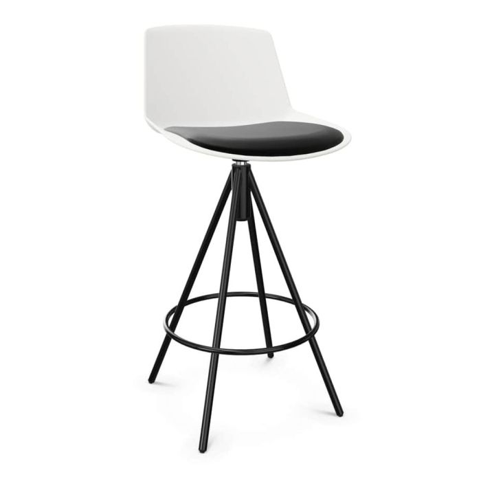 Noom Stool, H67cm, White Seat With Black Seat Pad / Black Metal Base