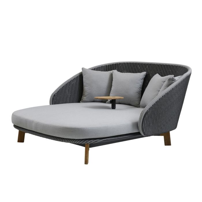Peacock Daybed With Table, Grey Shell / Light Grey Seat / Teak Legs