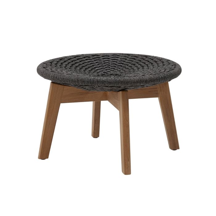 Peacock Footstool, Soft Rope, Dark Grey Seat / Teak Legs